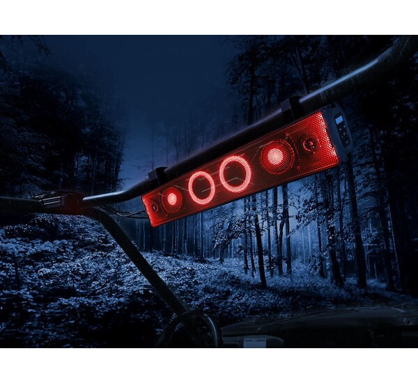25" zvukový systém speciálně vyvinuté pro ATV / UTV / golfový vozík / loď s reproduktory pro vychutnání si poslechu hudby během jízdy s možností přehrávání z USB, Bluetooth nebo AUX vstupu.
