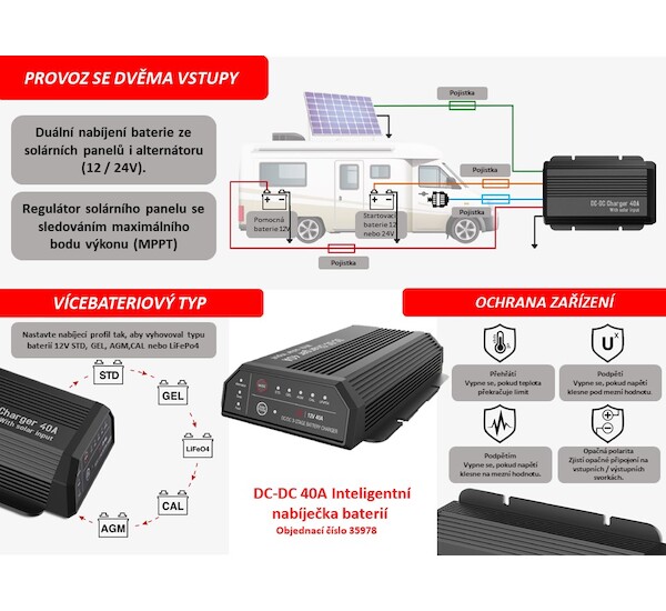 DC-DC 40A Inteligentní nabíječka baterií, 35978