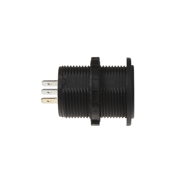 Připojení pomocí 3 přípojných konektorů 6, 3 mm označených polaritou +/- a vývodu - ke spotřebiči. Doporučení: předřaďte před ampérmetr pojistku 10 A.