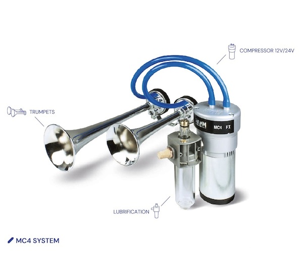 MC4 systém s trubkami řady TP je vyvíjen a vyráběn společností FIAMM Itálie pro bezpečnostní a zásahová vozidla. FIAMM je lídrem v těchto výstražných zařízeních. MC4 systém lze instalovat na každý typ vozidla. MC4 kompresor je určen pro napětí 24V. MC4 systém je schválen proti elektromagnetickému rušení v souladu restriktivní normou CEE 2009/19 a EHK Reg.10. Elektro-pneumatický systém MC4 je ideální pro životně důležité naléhavosti v hustém provozu. Doporučuje se montáž maznice která zlepšuje výkonnost MC4 systému a udržuje celý systém.