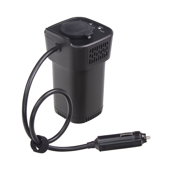 Interiérový měnič napětí z 12, 230V, USB 150W do držáku nápojů, 35150USB
