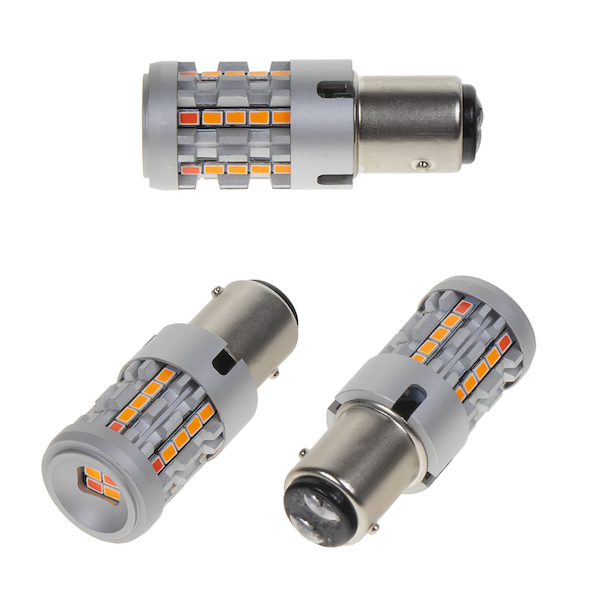 Nová generace A- CLASS LED autožárovek s paticí BAY15D (dvouvlákno), oranžová/červená.