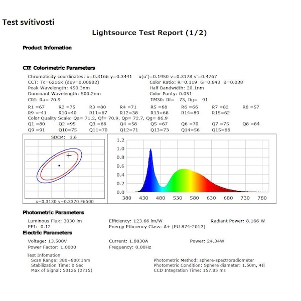 •světelný tok 3300 LM (RAW) / 1046 LM (efektivní)