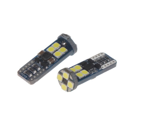 Náhradní LED žárovka s paticí T10, bílá, 12x vysocesvítivé LED diody 3030SMD, vhodná do parkovacích světel u starších vozidel. Svítivost LED diody je větší u žárovky 12 V 5 W. Díky teplotě světla 6000 K jsou LED žárovky ideálním doplňkem do reflektorů s xenonovými výbojkami, kde žluté světlo obyčejné žárovky působí rušivě.