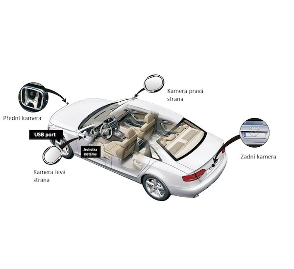360° systém čtyř kamer umístěných na vozidle, který zobrazuje situaci kolem vašeho vozidla v reálném čase a budete mít 100% přehled o dění kolem vašeho vozu.