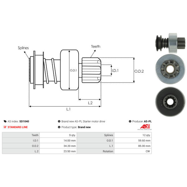 L. 85.85, Teeth 9, Splines1 12,