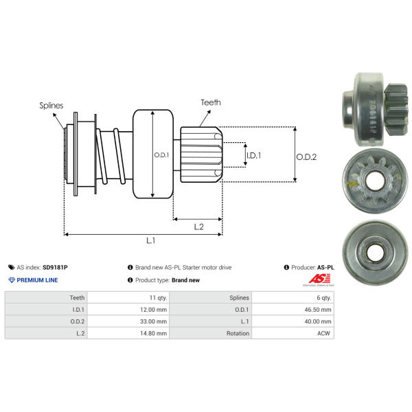 Pastorek startéru AS-PL SD9181P