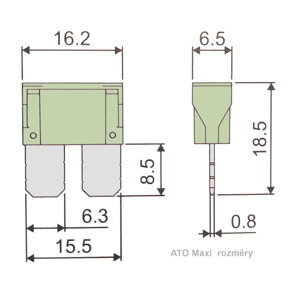Tento typ pojistek má nepatrně odlišné rozměry oproti klasickým nožovým pojistkám ATO viz schéma.