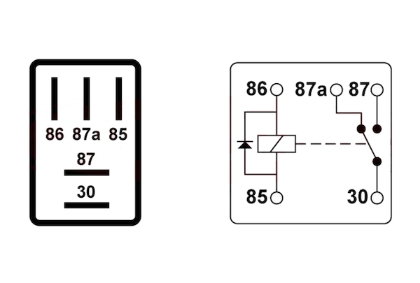 Přepínací mikro relé 12V 20/25A 5 vývodů s diodou