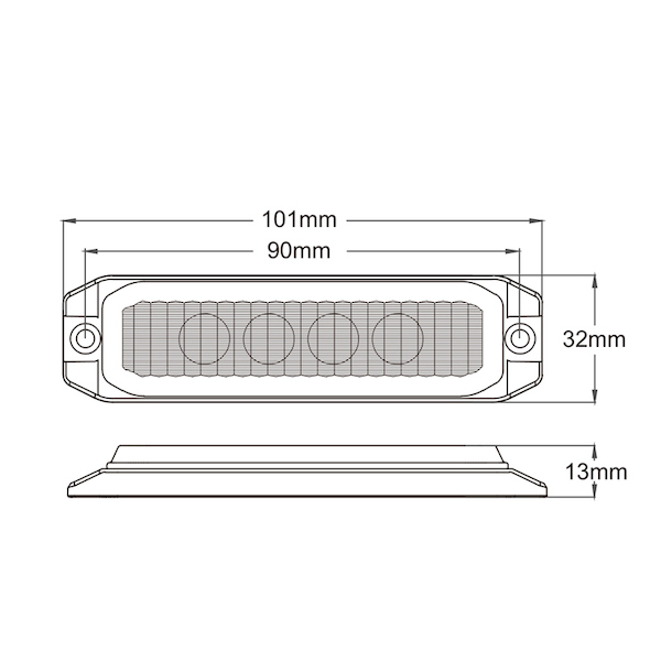 Přídavné oranžové extra tenké výstražné LED světlo pro externí povrchovou montáž.