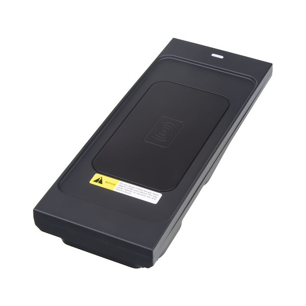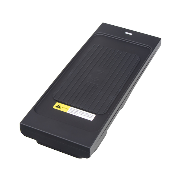 Nabíjecí přihrádka pro bezdrátové dobíjení mobilních telefonů prostřednictvím technologie Qi.
