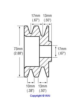 O.D. 71.80, W. 39.10, Grooves 2, Bore 17.00