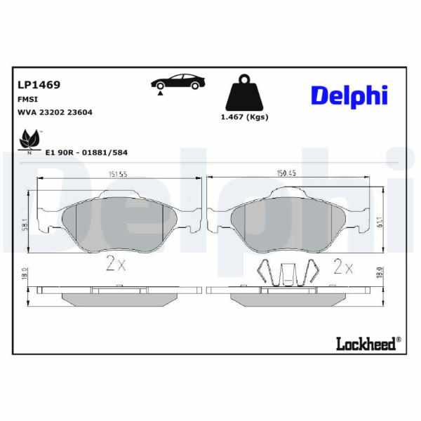 Sada brzdových destiček, parkovací brzda DELPHI LP1469