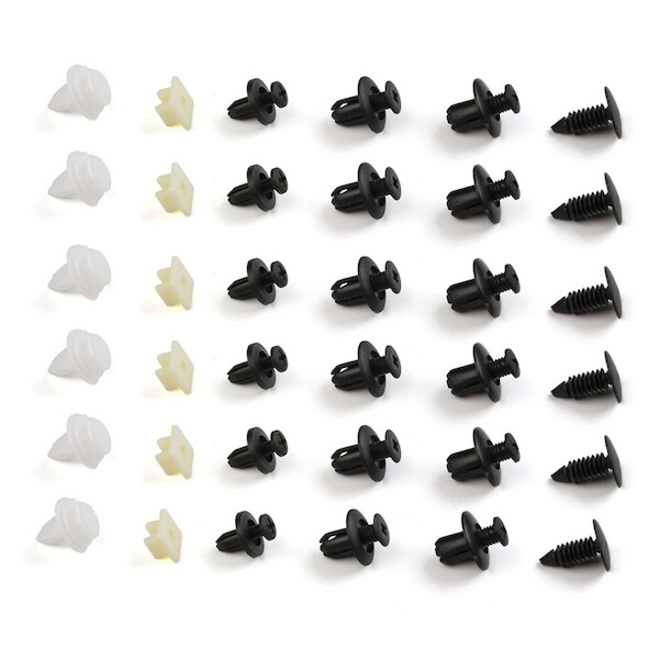 Sada plastových příchytek, používají se při opravách a instalacích, kdy většinou dojde k poškození původních příchytek na upevnění plastů, obložení v interiérech i exteriérech automobilů.