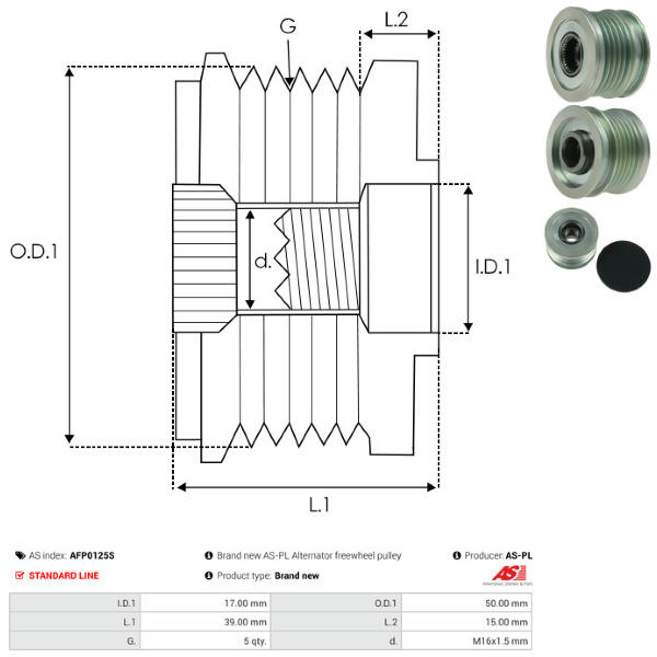Volnoběžná řemenice alternátoru AS-PL AFP0125S